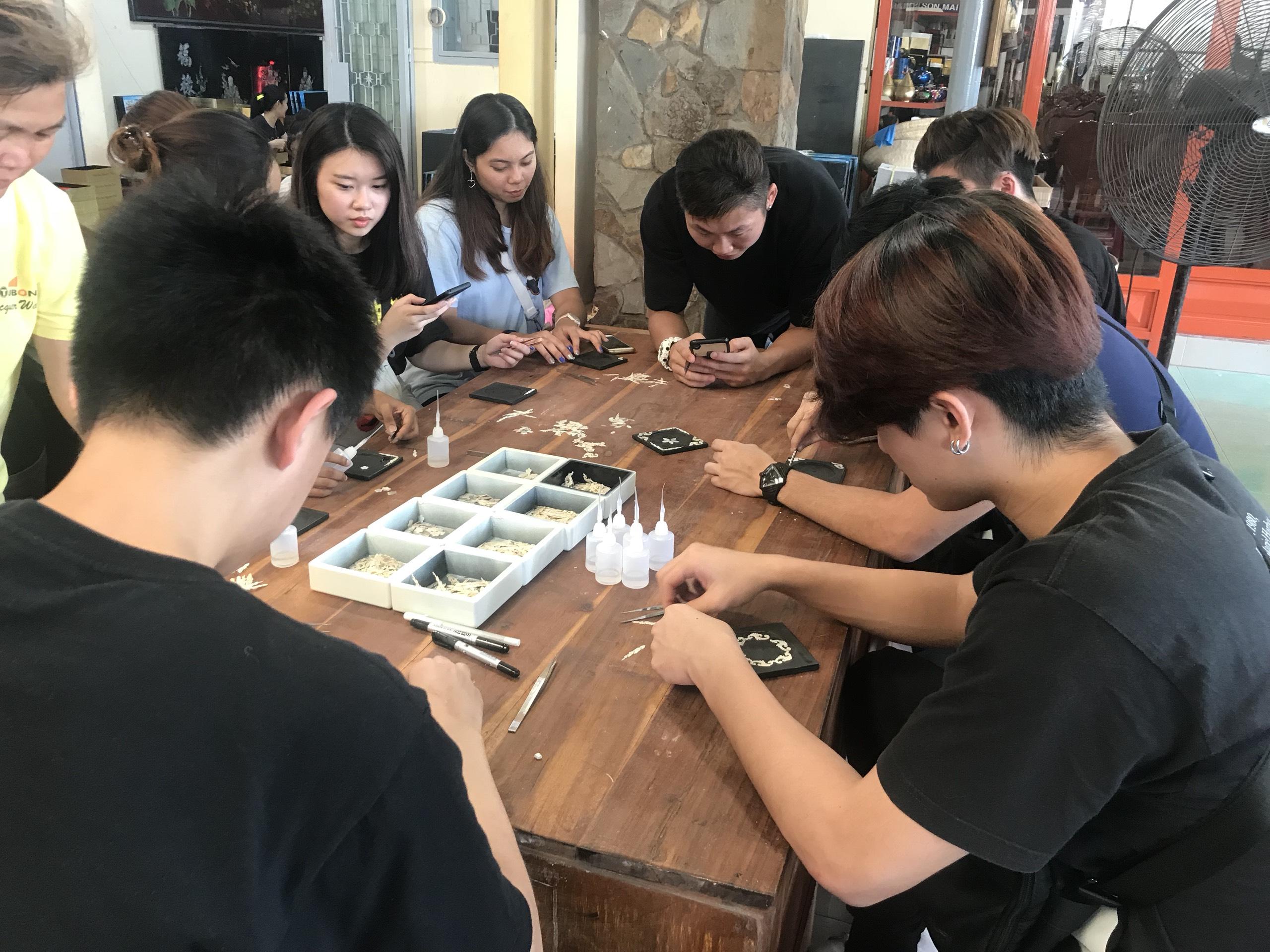 Sinh viên Singapore đến tham quan xưởng Tư Bốn và thực hành sơn mài - Đợt 2